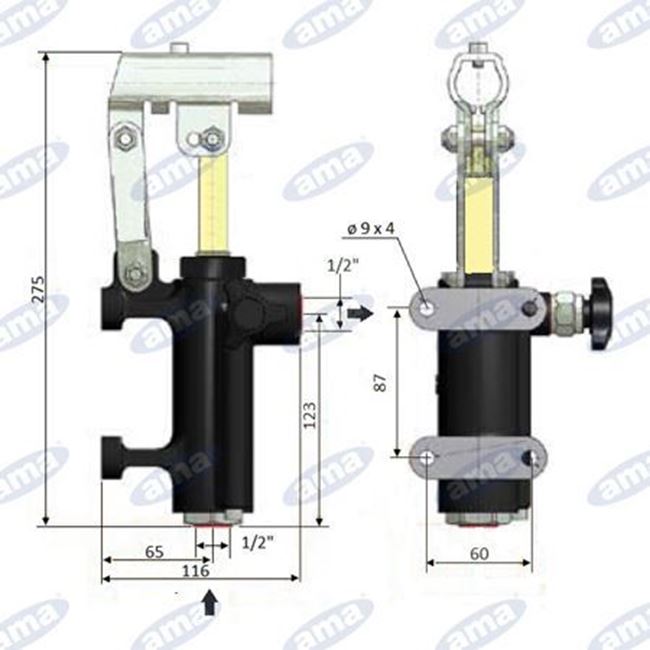 Pompa a mano da 43,82 cc attacchi 1/2" gas con rubinetto di discesa. Pressione max (bar) 280.
