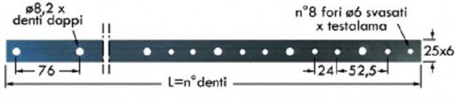 Asta forata per lama Gaspardo a 16 denti, lunghezza 235cm, applicabile ai modelli FBR/FBR Plus/FIORE