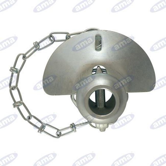 Cono guida per agganci inferiori 2/2° categoria, Ø sferico 56, larghezza 69, Ø foro 28mm. Cono guida con rotula, catena e spina; Ø Spina=11 ; lunghezza catena=150mm.