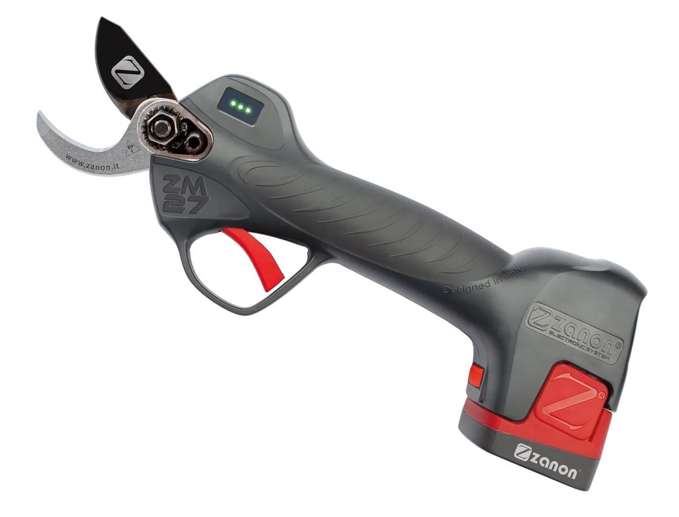 Forbice elettronica con batteria plug-in leggera e maneggevole. Adatta alla potatura di rami di piccolo diametro grazie alla sua apertura massima di 27mm, è stata creata appositamente per il florovivaismo e la viticoltura. La ZM 27  è fornita con due batterie plug-in agli ioni di litio intercambiabili che permettono un’autonomia di 2-3 ore ciascuna.