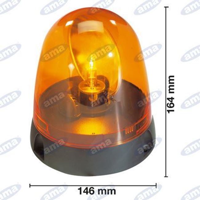Girofaro base piana 24 V con calotta ambra in policarbonato. La lampadina è inclusa.