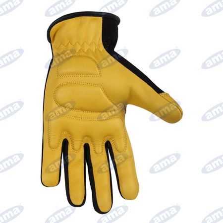 Guanto antivibrazioni Premium con palmo in pelle e dorso in Spandex. Protezioni sulle dita e chiusura elasticizzata sul polsino. Taglia 9 L. La confezione contiene 12 paia di guanti.