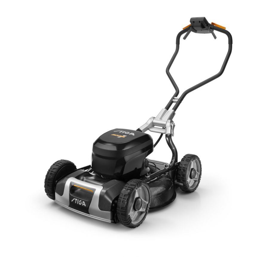 Tagliaerba STIGA modello MODEL 1 a trazione alimentato a batteria 80V. Sistema di taglio con mulching.