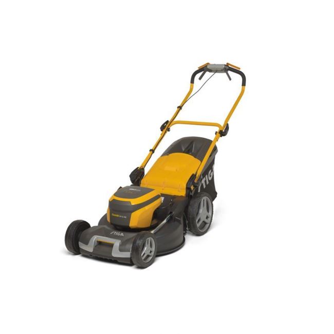 Tagliaerba STIGA modello COMBI 55 S AE a trazione elettronica alimentato da batteria 80 V con sistema di taglio 3 in 1 (raccolta, mulching, scarico posteriore).