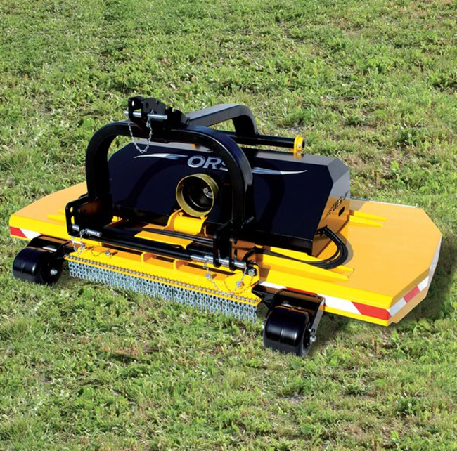 Trinciatrice idonea per taglio erba e legna Ø max 3/4 cm. Trinciatrice con lame mobili, ruote anteriori e rullo posteriore regolabili in altezza, scarico bilaterale, spostamento idraulico, allargamento idraulico della larghezza di taglio, cardano con frizione e ruota libera e catene di protezione. Larghezza di lavoro: 193 cm.