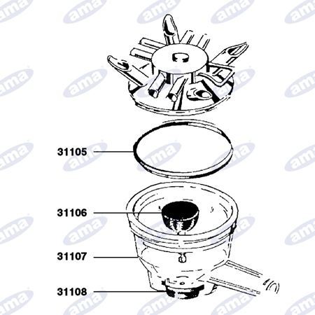 Valvola con perno a ricambio adattabile a collettore De Laval art ama 31103.