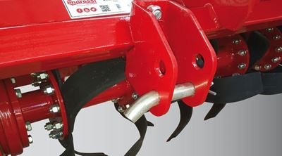 Zappatrice Tunder ENG 185 6 C con trasmissione laterale ad ingranaggi 6 zappette di serie per flangia (9 flange e 54 lame.) Lavora con una larghezza di 185 cm.